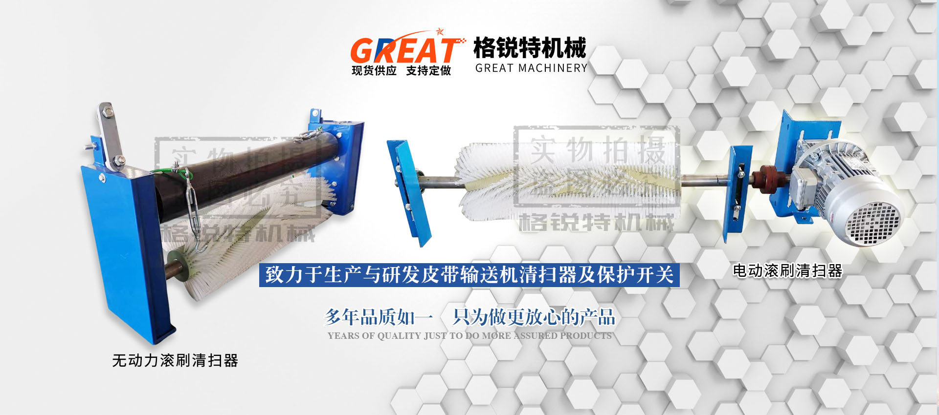 衡水格銳特機(jī)械科技有限公司常年致力于生產(chǎn)與研發(fā)皮帶輸送機(jī)清掃器及保護(hù)開(kāi)關(guān),其中主營(yíng)聚氨酯清掃器,合金清掃器,電動(dòng)滾刷清掃器,機(jī)械式滾刷清掃器,緩沖床,緩沖條,雙向拉繩開(kāi)關(guān),兩級(jí)跑偏開(kāi)關(guān),打滑檢測(cè)器,料流檢測(cè)器等保護(hù)開(kāi)關(guān),常年銷(xiāo)往各大水泥廠(chǎng),煤礦廠(chǎng),電廠(chǎng),輸送機(jī)廠(chǎng)家,質(zhì)量?jī)?yōu)越,價(jià)格實(shí)惠,望各大領(lǐng)導(dǎo)及同行來(lái)廠(chǎng)參觀(guān)指導(dǎo),期待您的光臨!?。?/p>